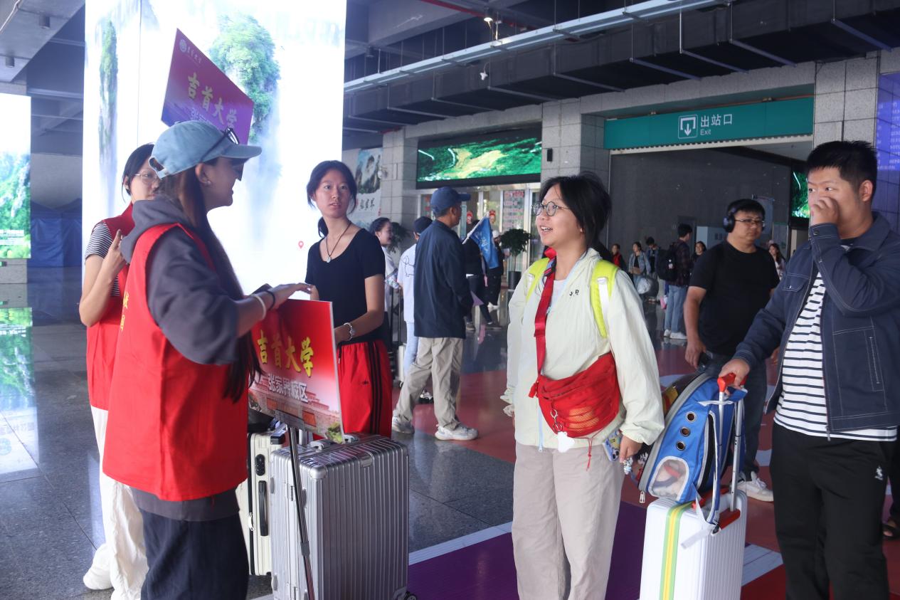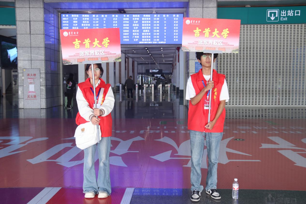 我校在吉首校区和张家界校区同步开展迎新工作。为方便新生顺利到校,学校在高铁站、火车站等主要交通枢纽设置迎新接待点,安排专车接送新生抵达所在校区,实现从“车门”到“校门”的一站式直达。