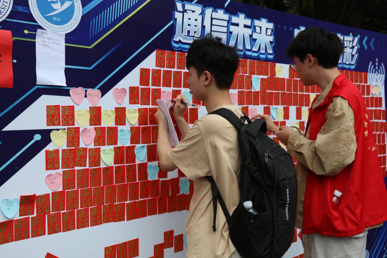 校园内,迎新活动亮点纷呈。校声乐队、街舞队、火星魔术社等社团在各校区轮番上演快闪表演,引得目光无数,掌声不断,更增添了迎新现场的热情与活力;书法协会现场挥毫,为新生送上专属墨香祝福;各学院为新生准备了精美的迎新礼物,承载着学院对学子们的诚挚欢迎与关怀。签名墙、打卡框,这里的每一张合影,相机的每一次快门按下,都是难忘的初见时刻。
